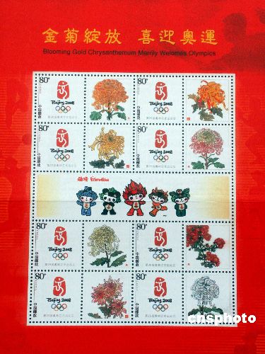 10月18日,隨著中國開封第24屆菊花花會的開幕,《金菊綻放迎奧運》個性化郵票發(fā)行儀式在河南省開封市午朝門廣場舉行!督鹁站`放迎奧運》個性化郵票是以第29屆奧運會會徽為主圖的個性化郵票,該套個性化郵票有三大特點:一是奧運會徽和吉祥物“福娃” 首次出現(xiàn)在同一版面上,二是首次以城市市花與奧運會徽相結(jié)合,三是迄今為止個性化郵票中使用主圖最多的一套。更主要的是奧運會徽的主要設(shè)計者之一張武先生是開封人,該套個性化郵票的發(fā)行表達(dá)了他心系奧運、情系家鄉(xiāng)的意愿。